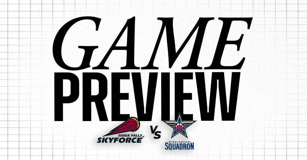The Sioux Falls Skyforce continues their five-game road trip Wednesday night with a matchup against the Birmingham Squadron at Legacy Arena.